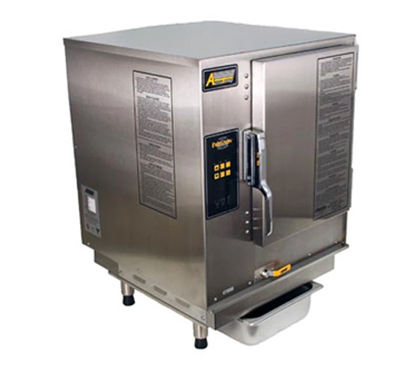 Connectionless Evolution™ Boilerless, Convection Steamer featuring Steam Vector Technology, counter top, LP gas, holds (6) 12″x 20″x 2-1/2″ deep pans, Digital Controls, NO water and drain connection required, warranty NOT voided by water quality, NO water filtration required, 60,000BTU, 120/60/1ph, 5' cord & NEMA 5-15P, ENERGY STAR®