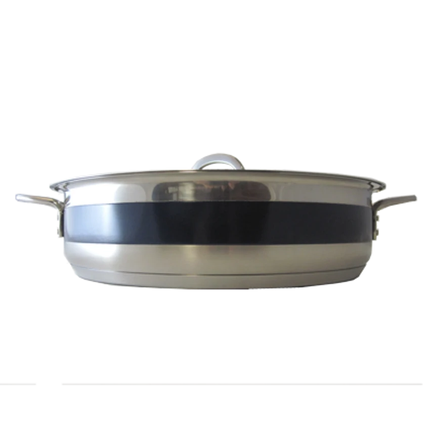 Classic Country French Pot, 6 qt., 12-3/8″ dia. x 3″H, round, with cover, handled, induction bottom, stainless steel, cobalt blue, NSF