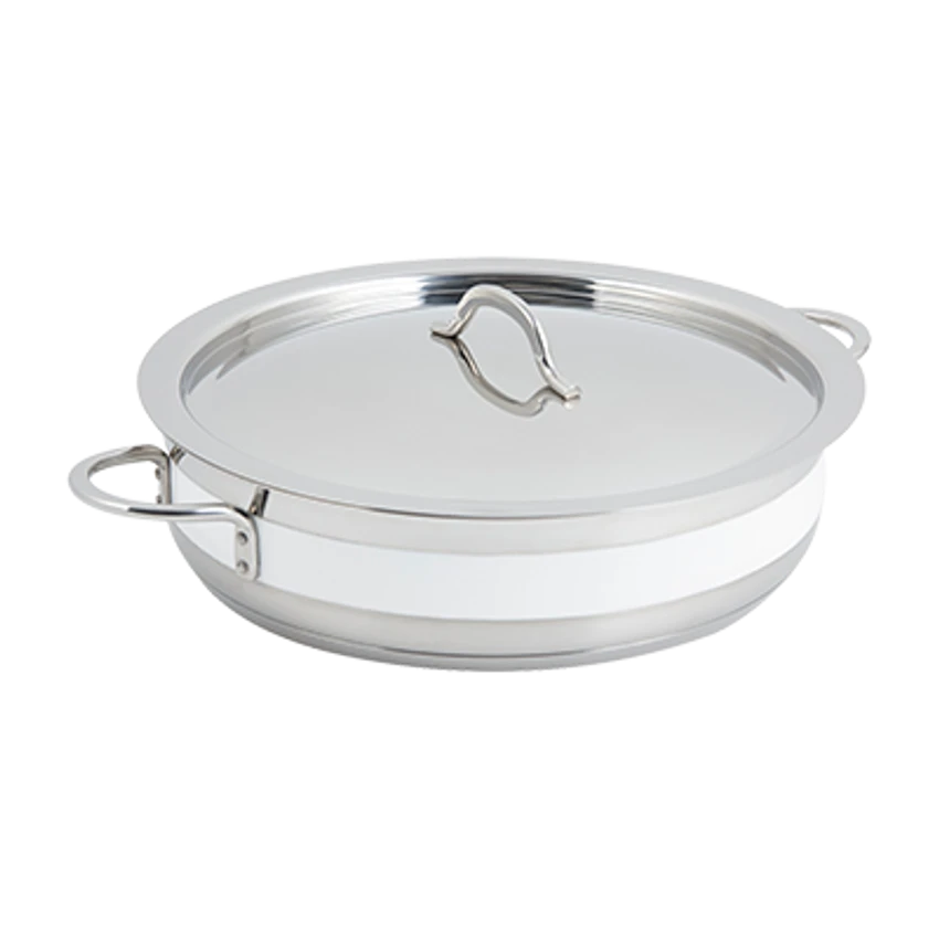 Classic Country French Pot, 6 qt., 12-3/8″ dia. x 3″, round, with cover, handled, induction bottom, stainless steel, white, NSF