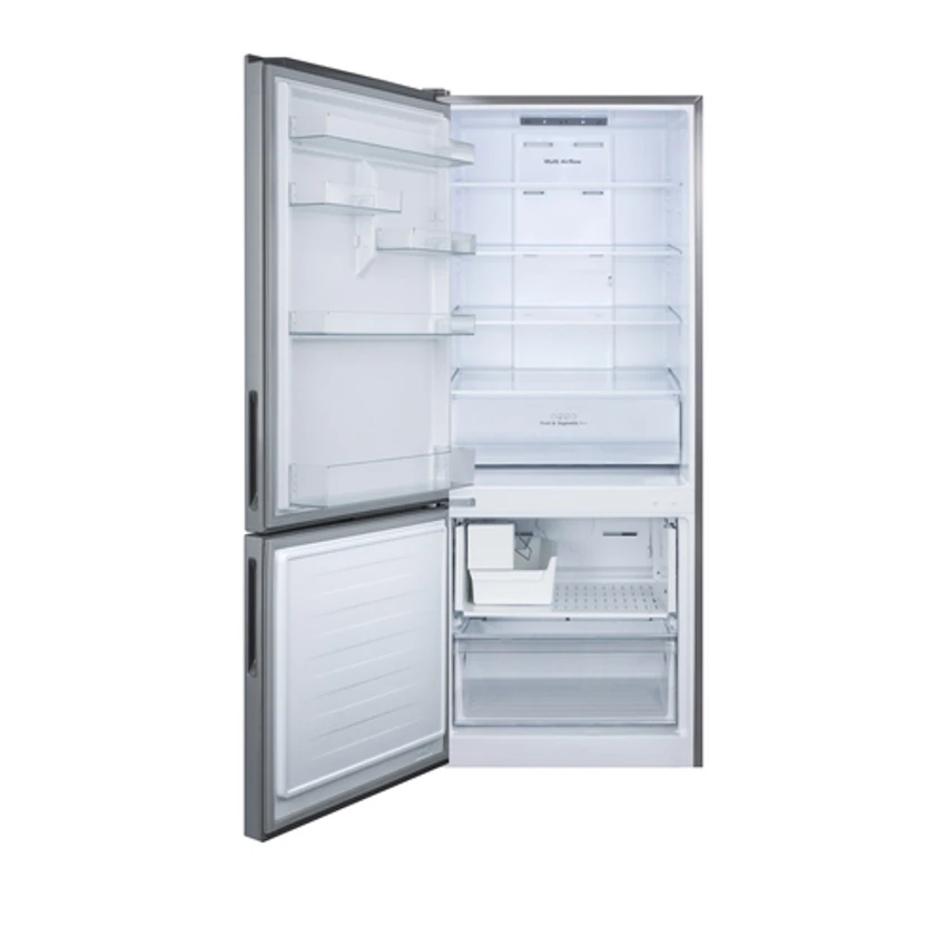 Refrigerator-Freezer, reach-in, one-section, built-in or freestanding, rear mount self-contained refrigeration, 27.63″W x 26.75″D x 67.63″H, 14.8 cu. ft. capacity, bottom freezer storage, factory installed ice-maker, (2) right-hinged solid doors, (3) adjustable glass shelves, (1) freezer drawer, (1) crisper, bottle rack, frost-free defrost, independent controls, digital thermostat, LED interior lighting, fingerprint resistant, platinum finish, white interior, level legs, R600a Hydrocarbon refrigerant, 115v/60/1-ph, 2.5 amps, ETL, cETL, (Residential)