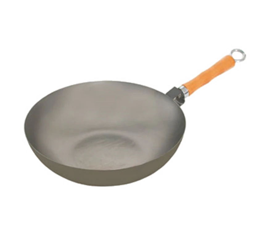 Mandarin Wok Pan, 11-1/2″ dia., flat bottom, bamboo handle, steel construction