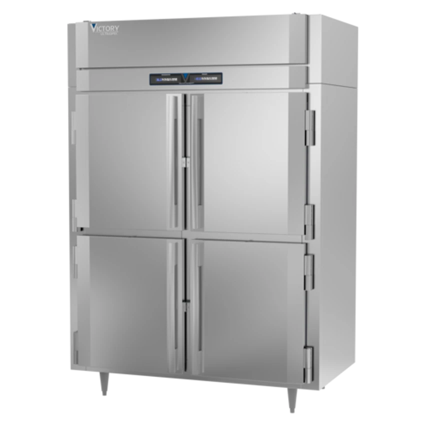 UltraSpecâ„¢ Series Refrigerator/Freezer, Reach-in, two-section, self-contained refrigeration, 24.08 cu. ft. capacity per section, (4) wide half height solid hinged doors, (6) silver freeze (chrome-style) wire shelves, stainless steel exterior, aluminum interior, standard depth cabinet, TOUCH POINTâ„¢ electronic temperature control/indicators, LED lighting, expansion valve technology, Santoprene door gaskets with 2 year warranty, stainless steel breakers, top mounted compressors, refrigerator 1/3 HP & freezer 3/4 HP, cULus, UL EPH Classified, UL-Sanitation, MADE IN USA