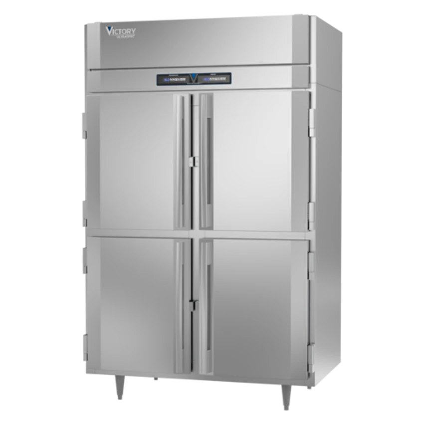 UltraSpecâ„¢ Series Refrigerator/Freezer, Reach-in, two-section, self-contained refrigeration, 21.01 cu. ft. capacity per section, (4) half height solid hinged doors, (6) silver freeze (chrome-style) wire shelves, stainless steel exterior, aluminum interior, standard depth cabinet, TOUCH POINTâ„¢ electronic temperature control/indicators, LED lighting, expansion valve technology, Santoprene door gaskets with 2 year warranty, stainless steel breakers, top mounted compressors, refrigerator 1/3 HP & freezer 3/4 HP, cULus, UL EPH Classified, UL-Sanitation, MADE IN USA