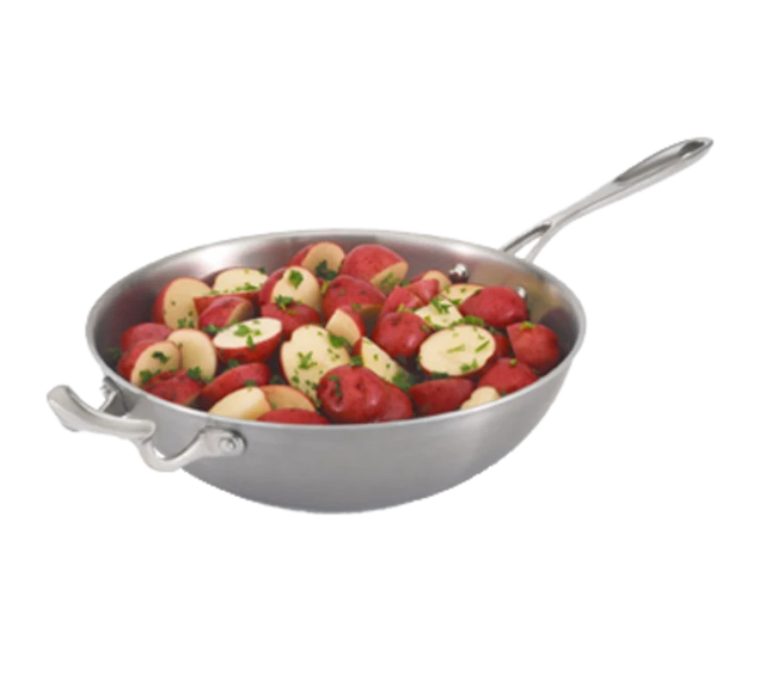 Miramar™ Display Cookware Stir Fry Pan, 5-3/16 quart, 11-7/8″ dia., 3-11/16″H , 3-ply construction, 18-8 stainless interior, 18-0 stainless exterior, 3004 aluminum core bottom & side walls, satin finish interior & exterior with mirror finish welded handles, for use with gas, electric or induction ranges, NSF, imported, Jacob's Pride® Collection, Limited Lifetime Warranty (cover sold separately)