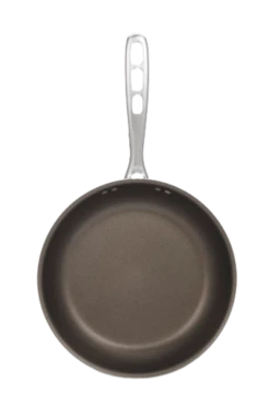 Wear-Ever® Aluminum Fry Pan, 12″ (30 cm), with PowerCoat2â„¢ non-stick coating, featuring TriVent® plated handle & innovative EverTiteâ„¢ Riveting System, handle rated at 450° for stovetop or oven use, 9-3/4″ (25cm) bottom diameter, 2-1/2″ (6.4 cm) inside height, 8 ga., NSF, Made in USA