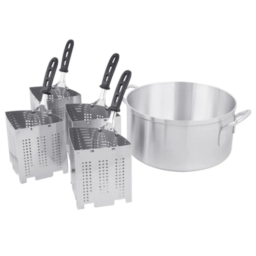 Wear-Ever® Pasta & Vegetable Cooker, 18-1/2 quart, aluminum pot with (4) Wear-Ever® pasta inset, 3 quarts, perforated 18-8 stainless steel, riveted plated steel handles with Trivent® rated at 450°F (232°C) stay cool to the touch, Made in USA