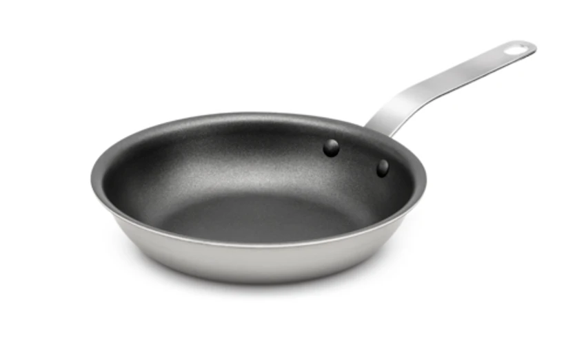 Tribute® Fry Pan, 7″ dia. (top) x 1-3/4″H x 4-3/4″ dia. (bottom), TriVent® plated handle, EverTite™ Riveting System, Ceramiguard® II™ non-stick interior, 3-ply construction (18/8 stainless steel interior, 3004 10 gauge alum core bottom & side walls, 18-0 stainless steel exterior), induction ready, NSF, Made in USA