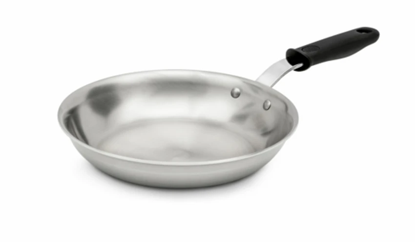 Tribute® Fry Pan, 8″ dia. (top) x 1-7/8″H x 5-3/4″ dia. (bottom), bonded TriVent® silicone insulated handle, EverTite™ Riveting System, handle rated at 450° F for stovetop or oven use, natural finish interior, 3-ply construction (18/8 stainless steel interior, 3004 10 gauge alum core bottom & side walls, 18-0 stainless steel exterior), induction ready, NSF, Made in USA