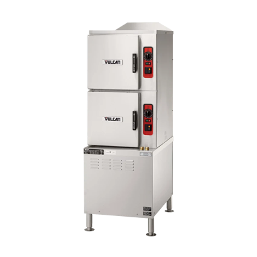 The Vulcan C24ET10-PS Electric Convection Steamer features two compartments that can accommodate as many as ten pans!